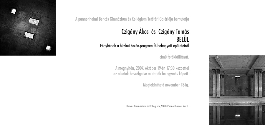 Czigány Tamás Töredékei pont az ellenkező irányba tartanak. Gyenge, silány, eldobott és árva fényeket figyelnek és mentenek. A környező sötétséggel együtt. Gyönge jelet erősíteni szemcsézettséggel jár, fényképei ezért jellegzetesen ilyenek. A zaj rút, a szemcse szép – szokta mondani. Azért szép, mert itt nem szétesik, hanem tapinthatóan összeáll valami. Ugyanez történik a teljesen homályos felvételeken, melyek nem elmosódnak, hanem kibontakoznak éppen. Nem tolakvó egésszé, hanem fontos részekké, kis egészekké, melyek nyitottak beépülni egy teljesebb tágasságba. Így segítenek egyszerre megtartani a mellékest – a látványt – és a lényeget – a nézést.